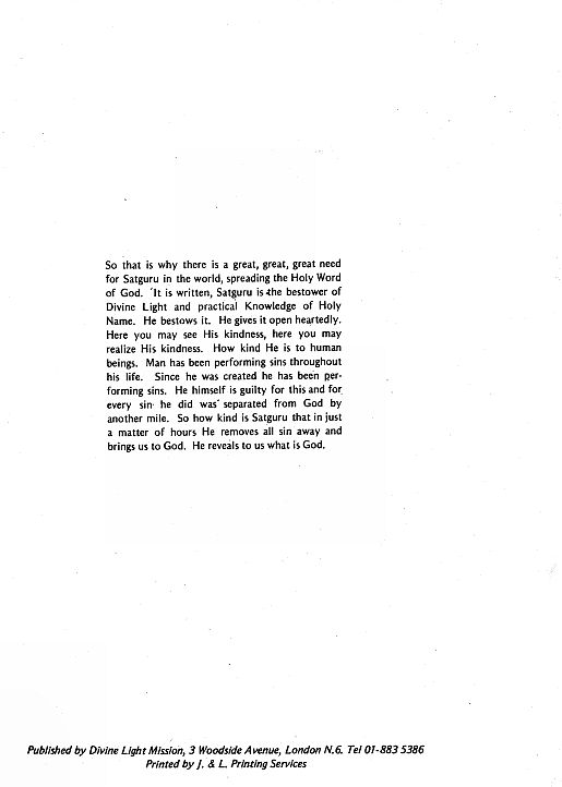 Published by Divine Light Mission, 3 Woodside Avenue, London N.6. Tel 01-883 5386