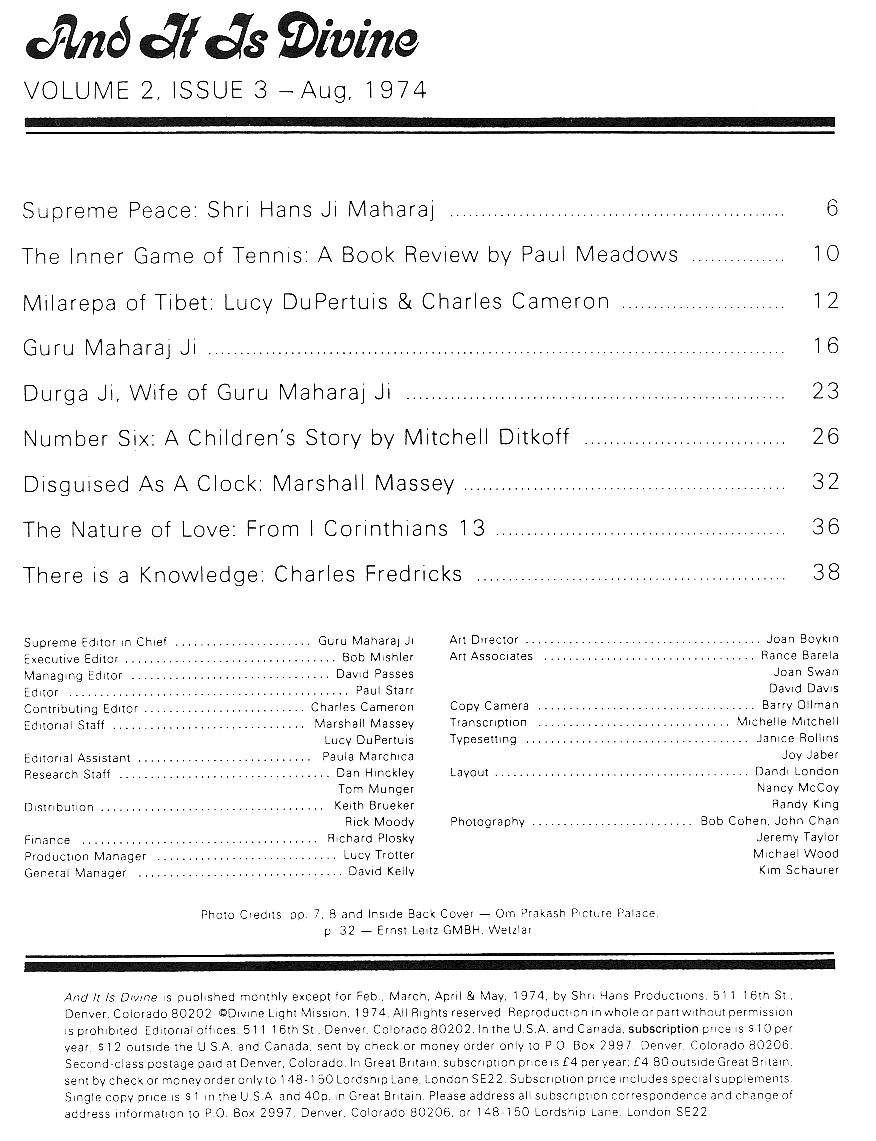 Volume 2, Issue 3, August 1974, And It Is Divine Magazine