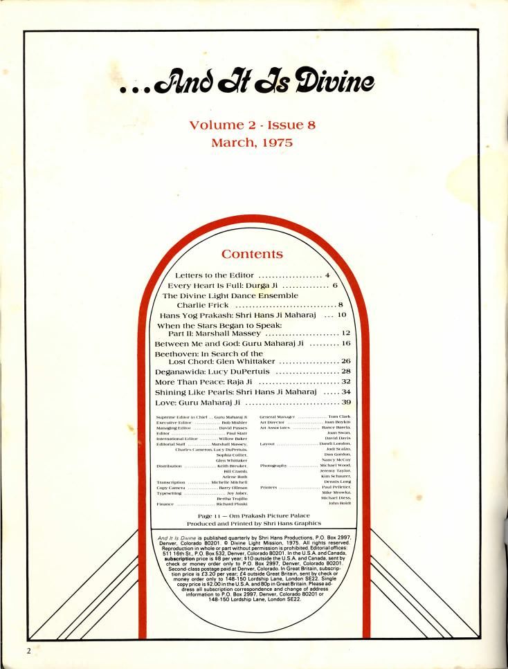 "And It Is Divine" was the name of this colour magazine published by Divine Light Mission in the USA from November 1972 until the late 1970's when it was replaced by "Élan Vital." It began as a monthly magazine attempting to carry a wide spectrum of articles relating to the wider alternative culture with highbrow pretensions and ended the same as all other Divine Light Mission magazines printing pictures and speeches of Prem Rawat's or his immediate family or close followers.