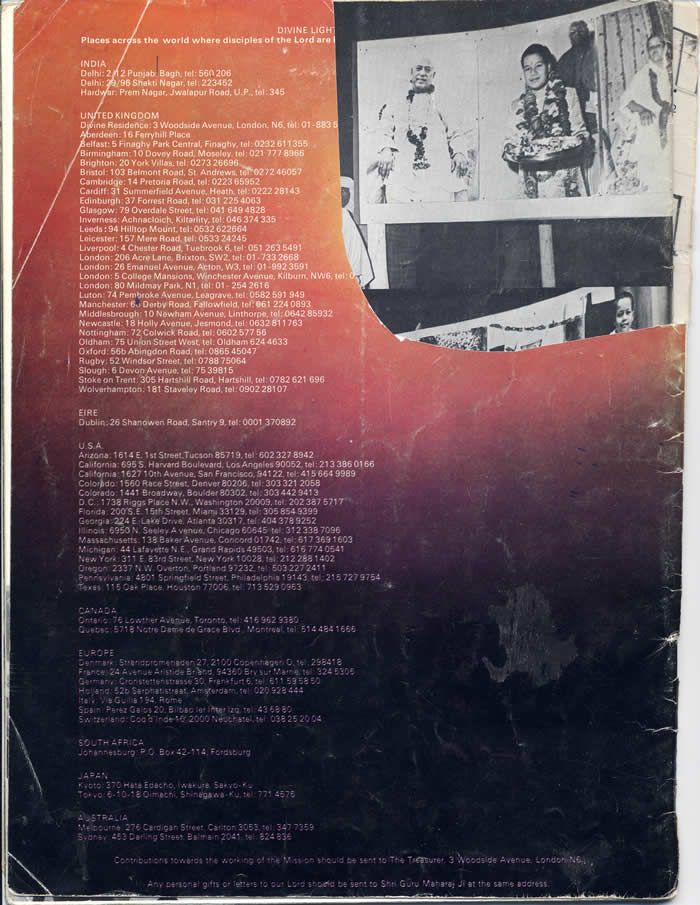 There is a beautiful ashram in India called Prem Nagar - there are many other ashrams in India but Prem Nagar is especially beautiful - and many western people came to see Guru Maharaj Ji before they received Knowledge. At that time they were wandering in India here and there listening to many different types of sadhus - some gave them rosaries, some gave them mantras, some gave them other means. They grew their hair long and put ashes on their body and became sadhus
