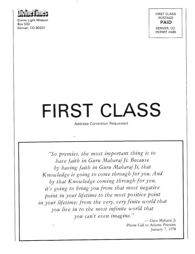 Keep That Faith Up Guru Maharaj Ji's Phone Call to the Atlanta Community, January 7, 1978