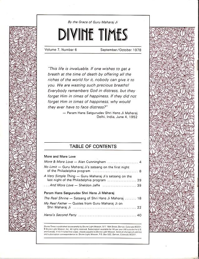 Now he is here and we are shouting our Bolie Shris. It is a night for joy, a night for tears. Maharaj Ji speaks to our hearts, shows us he knows every step we've taken since we saw him last. He speaks of every game we've played, every trap we've fallen into in those few short weeks.