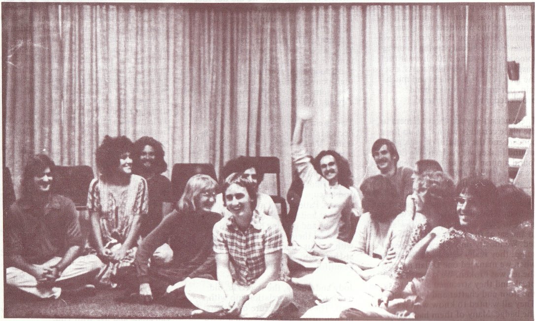 DUO in South Australia has shown remarkable growth in the last month or two. Apart from many organisational changes, which are secondary, there developed a high community feeling. Many more premies are plugging into various services than ever before now. Two major catalysts to this excellent situation have been fortnightly community meetings, at which everyone discusses and decides upon various points to do with the running of the Mission, and WWA-inspired counselling sessions. These latter are regularly held for the benefit of individuals and small groups who desire to experience love and understanding contact. But the most successful of all was a mass session attended by sixty premies at the ashram the Sunday recently. All counselling is done on a mutual help basis, not a helper-and-helped situation.