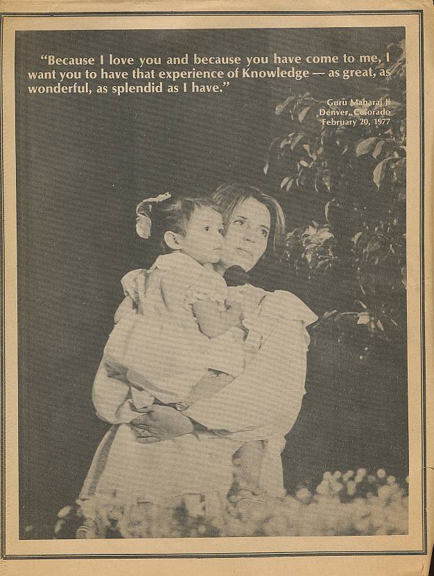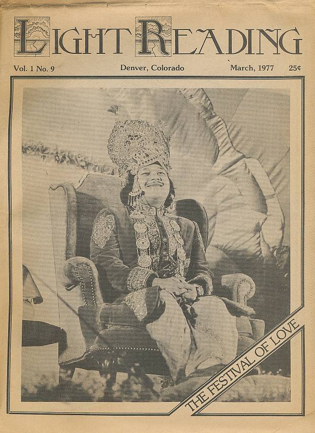 Almost simultaneously the entire of staff of Light Reading experienced a realignment of priorities. Two powerful darshan programs of our Guru Maharaj Ji and a two hour session with Joe Anctil (Maharaj Ji's press secretary) helped us far more clearly perceive what our true service is – to focus on Knowledge and its infinite manifestations individually and collectively within our community. Guru Maharaj Ji has given us everything. He has shown us the Light of God and how to live within that Light. He has manifested a world family of love. And most of all, he has given us himself. What need is there to look elsewhere? Sure, rebirthing, EST, and pyramids are "interesting," but our hearts and souls crave something a little more substantial.