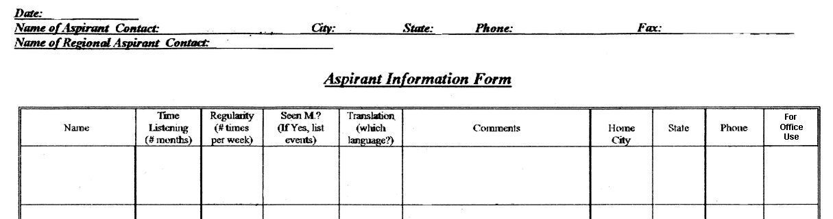 c. Aspirants attending regularly for the last 5 months or more (An Aspirant Contact Manual with more details is forthcoming.)