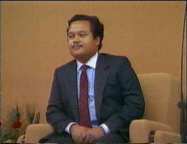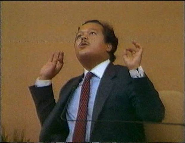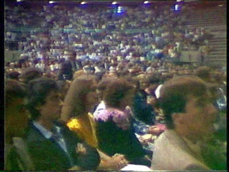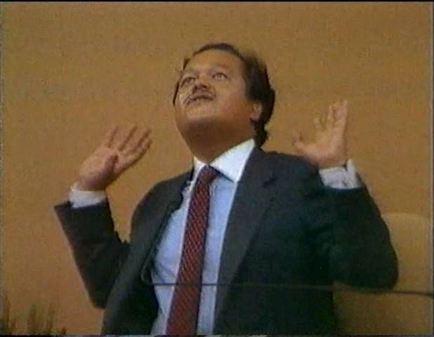 That song wasn't enough to get Prem Rawat, the Lord of the Dance, up and waving his arms so the band breaks into some South American rhythm with a song that includes a lot of 'senors' and 'satgurus'. Should be irresistable and sure enough, once again, Rawat dances though it's a pretty lame performance lasting only a couple of minutes.