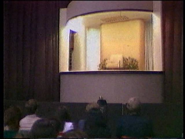 At the conclusion of Rawat's speech he remained on stage while the audience of premies (i.e. devotees) sang Arti. This was not unusual but filming it and distributing it on video was unusual and provides evidence that at this time Rawat (Guru Maharaj Ji or Maharaji) was still leading his followers further into an Indian inspired devotional worship of him as a divine figure as do the words of his speech. As the audience was not miked, their singing is only just audible but the song can be easily recognised by the sound of the guitar accompaniment and faint snatches of the song. Click here for the video segment showing arti.
