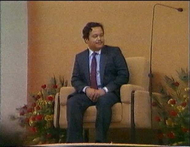The world world clings to me to destroy me. Come this, come that, let's do this, let's do that and where where will it all go? Where all where will all these incredibly great leaders of this world take this world? They don't know where they're going. They have no idea. Look at Sadat. There he was sitting down. A soldier started walking towards him. He thought he was gonna salute him so he got up to salute him, he wasn't gonna salute him, he was gonna mow him down and that's exactly what he did. The craziness in this world isn't going down by any means. The hatred that one human being has for another isn't going down by any means. And yet Guru Maharaj Ji and the I know on one hand this world is offering us on a platter you know the hate, the fear, jealousy, anger, suspicion, ego, all the nice candies. And on the other hand Guru Maharaj Ji is offering us the love, the joy, the truth, the bliss, the harmony, the light, cause he has it, he has it to offer, he has it to offer to everybody, it fills them up, It's the it's the business of making people happy. Some people like to do something, some people like to do others and yet I like to go round just seeing people happy. When people are confused I don't like it. Having ashram meeting this morning, there was a guy from France. He was confused, really confused. I asked him if he was really, really, really confused. He said, Yes," he was really, really, really confused so I told him to smile and he smiled. When he did I told him he wasn't confused because if he were confused, I mean here we are, we feel, we want to feel confused. Sympathy? Maybe somebody will say "Oh, look at the poor soul, he's confused." How can anybody be confused in this world? In one sense, it's all very straightforward. The ones that are confused, they don't smile, they've got nothing to smile about, as a matter of fact. They're so confused, they don't know whether to smile or to cry or to laugh or to do what to do. They're confused, now that's confusion, massive confusion. Massive confusion happens, but we, having this Knowledge, how can we be confused?