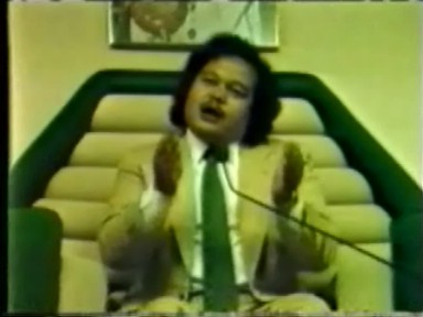 These are excerpts from speeches Prem Rawat made in 1979 at the Guru Puja Festival in Miami, Florida. 'Puja' means worship and these festivals were the highlights of Divine Light Mission's annual activities. It was in the period 1977 to 1982 that Prem Rawat publicly and continually propagated the myth of his divinity to his followers, teaching that was a unique Divine Being incarnated in the lineage of avatars. His Knowledge revealed God (the energy that is the source of the universe and life) and the only meaning in and purpose of life was surrender to him. During this period his wife, Marolyn Rawat, nee Johnson newly christened as Durga Ji, and his Western "initiators" (the most dedicated of his followers) took an active role in the recruitment of his religion and the inspiring of his followers. She regularly and publicly crowned him and kissed his feet. At this time he was whipping a large number of his devotees into a frenzy with his dancing dressed as Krishna and was having regular darshan sessions where the devotees would line up for the privilege of passing by his throne and kissing his feet and leaving a "darshan envelope" containing a dedication to help him to live in luxury. This video includes excerpts from the following speeches: