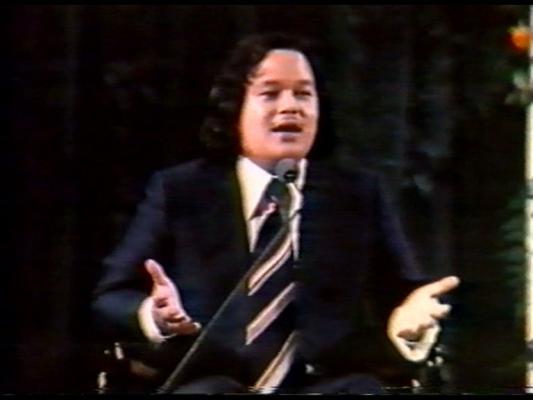 I mean, you know, it's like a lotta people - you talk to a lotta people and you talk about meditation. You know and it's like, to a lotta, I mean, I, you can see that, and it's a lot of times on TV, they portray - now McMillan's wife does is, is into some meditation. I mean, this is how the movie goes on. And so they portray "meditation", a role of meditation; and there she is, you know, with legs crossed, and she's sitting like this; and that's meditation. And to a lot of people they do that, and that's meditation. Premies! I mean, if that's meditation, we are using the wrong word around here. Because that's not meditation. I mean, that's just like an exterior image of what maybe it is, it looks like, from outside. But what we do inside - what happens when we actually go there? What happens when that, when all that, all that glory, when all that beauty starts to completely unfold and we start to merge into that oneness of that incredible, incredible Knowledge? That, to me, is that Knowledge. That, to me, is that experience. That, to me, is that meditation, by which I mean meditation. Not just "meditation," just sitting cross-legged and have your, you know, hands like this and so on and so forth, have your eyes closed or open or whatever. Not a, not a posture. But that real experience inside. And by Guru Maharaj Ji's Grace, this can all come to us. And it is all possible. And I mean, this is, this is what this whole thing is all about, you know. And it's just so beautiful.