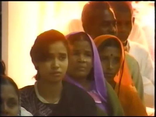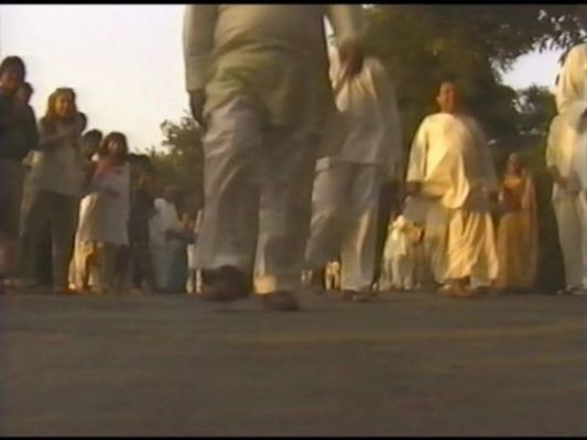 Pictures below are from scenes of a Darshan Line where Prem Rawat sits on a high chair, people line up, pass in front of Rawat amd kiss his feet as they go past. It is filmed so that premies will recognise it and understand but others won't.